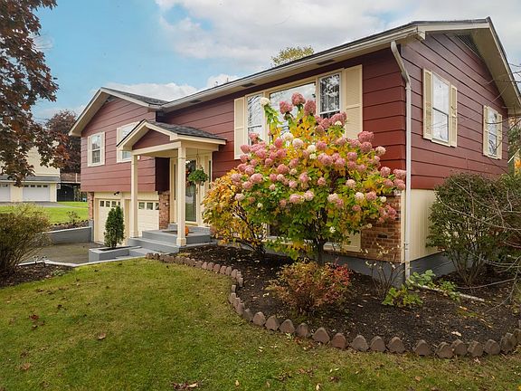 This split-level home sits near the end of a dead-end street with a pretty landscaped yard on over half an acre lot in a terrific Rutland Town location. The open floor plan features the kitchen and L-shaped living space that welcomes gatherings. The kitchen has painted cabinets, stainless steel appliances and direct access to the back deck. Just steps away is a dining area big enough to gather family and friends for holiday dinners and connects to the living room all with hardwood floors. The lower level family room is centered around an attractive brick hearth with cozy fireplace insert and walks out onto an attractive multi tiered concrete patio. Totaling three bedrooms, 2-baths, the home includes a primary bedroom with two closets, jack-n-jill bath with a double vanity. Enter from attached garage into convenient mudroom area. Separate laundry room. The back deck overlooks the private yard, complete with shed and nature shade. Convenient Rutland Town location, highly regarded school district, in easy commuting distance to everything the Rutland area offers.