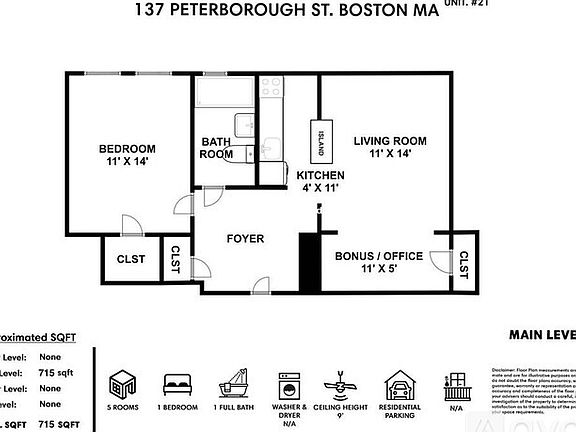 This 715 square foot apartment home has 1 bedrooms and 1.0 bathrooms. This home is located at 137 Peterborough St #21A, Boston, MA 02215.