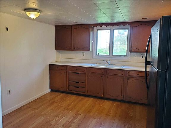 This 3 bedroom home on a large corner lot has so much potential. Main floor offers a kitchen, dining room, living room, bedroom, bathroom and laundry room for one floor living. Upstairs are 2 additional bedrooms could be 3 if storage area is finished. Newer furnace (approx 3 years). Detached garage offers a lower level for a workshop or storage. Garage and house do need a little TLC and being sold as is.