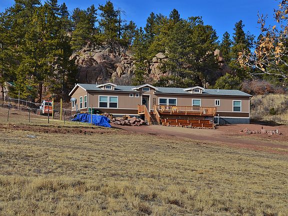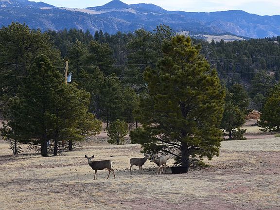 You will never want to leave this paradise! The property has it all!! Enjoy walking on top of massive rocks and towering ponderosa pines to gentle rolling meadows! All with heart pounding views in every direction! And, this is one of the finest manufactured homes you will ever see! You feel it the moment you enter the front door with beautiful slate and wood flooring and a designer's touch throughout! One aspect of the design you may like is the large master with a 5 piece bath is on one side of the home while the other three bedrooms are on the opposite side offering privacy! The home provides both a living room and a family room with a great open concept to enjoy with family and friends! The setting is stunning with the home tucked up to the huge rock outcroppings with the gentle meadows in front just teaming with deer! Located less than 30 minutes to Divide and an hour from I-25 in downtown Colorado Springs yet secluded on this stunning 20 acre parcel!! Come and enjoy the peace and quiet sitting on the large deck! Come on Home!