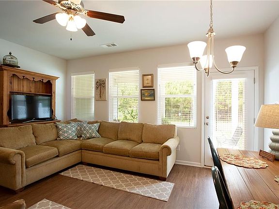 Better than new home in Villages at River Pointe is move in ready. This 2 bdrm, 2 bath home with its lovely open floor plan has only been lived in a few months. There is nothing left to do but move in and start enjoying this maintenance free lifestyle. Features include luxury plank vinyl throughout main living areas, granite counters, blinds, and covered patio looking out on your private fenced, wooded backyard. The laundry room joins the master suite and master closet for easy access. This easy lifestyle is close to downtown restaurants, shopping and so much more.