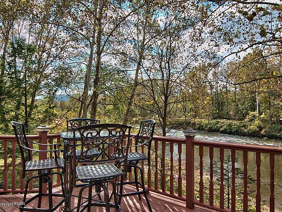 Renovated historic home on 2.2 acres with over 500' frontage on the Brodhead Creek and over 200' on Marshalls Creek. Spectacular water views from all rooms and from the beautiful gardens. Located just minutes from I-80 at the Delaware Water Gap exit and just over 1 hour from NYC. Well-located home for commuters and second home buyers. Easily accessible to all Poconos amenities including Camelback & Shawnee Ski Areas, Delaware River Recreation Areas, Crossing Outlets, etc. Main house has 3 bdrms, 1.5 renovated baths, renovated eat-in kitchen w/deck overlooking the gardens and creeks, den, formal dining room and basement gym. An in-law suite or potential master bedroom with renovated kitchen, bath, laundry and covered porch is attached to the main house. Also garage, workshop and generator.