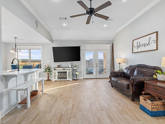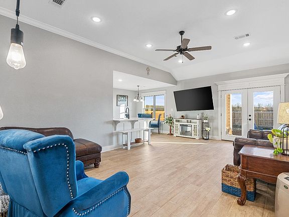 Beautiful all brick three bedroom, 2 bathroom home only a year old. The interior has wood looking tile and carpet in the bedrooms. Custom cabinets, granite countertops, crown molding, tile showers, elevated ceiling throughout with a vaulted ceiling in a guest bedroom. Trey ceiling in the main bedroom. Wood privacy fence. Refrigerator, washer and dryer convey with property. Wood blinds in bedrooms. Smart doorbell and thermostat. Added flooring in attic. square footage by completed by an appraiser.