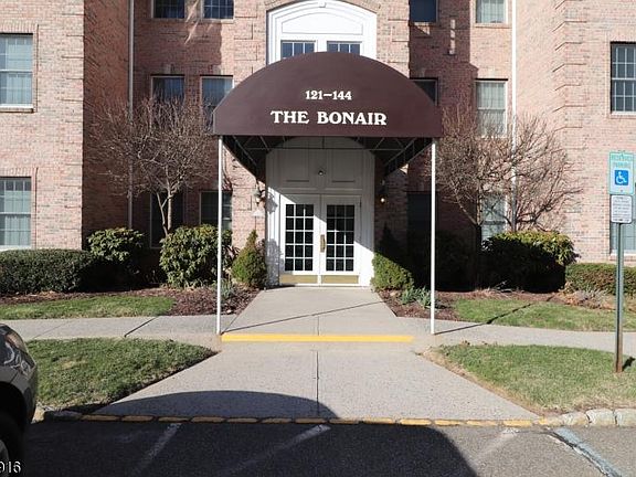 Lovingly maintained 3rd floor corner unit in Bonair Building #5. Square footage is 1,882. Fordham Model. This over 55 development has 144 units with amenities that include swimming pool, club house, bocci court, shuffle board, exercise room, billards and tennis/pickle ball. Tucked away on the 3rd floor this corner unit is bright and sunny. Gleaming wood floors (except in Bedrooms). Open floor plan...upgraded kitchen w/granite and stainless steel appliances overlooks the spacious formal living room and dining area. Den with built-ins off dining area. Primary bedroom suite with walk in closet and add'l closet and primary bath which includes shower stall and jetted tub. Second bedroom and second full bath are perfect for that overnight guest or office. Spacious unit with plenty of closets, and separate laundry room. Deck/patio area off of dining area. Additional storage in ground level covered garage area. One covered parking space included. Nothing to do but unpack and sit back and relax in this lovely community.