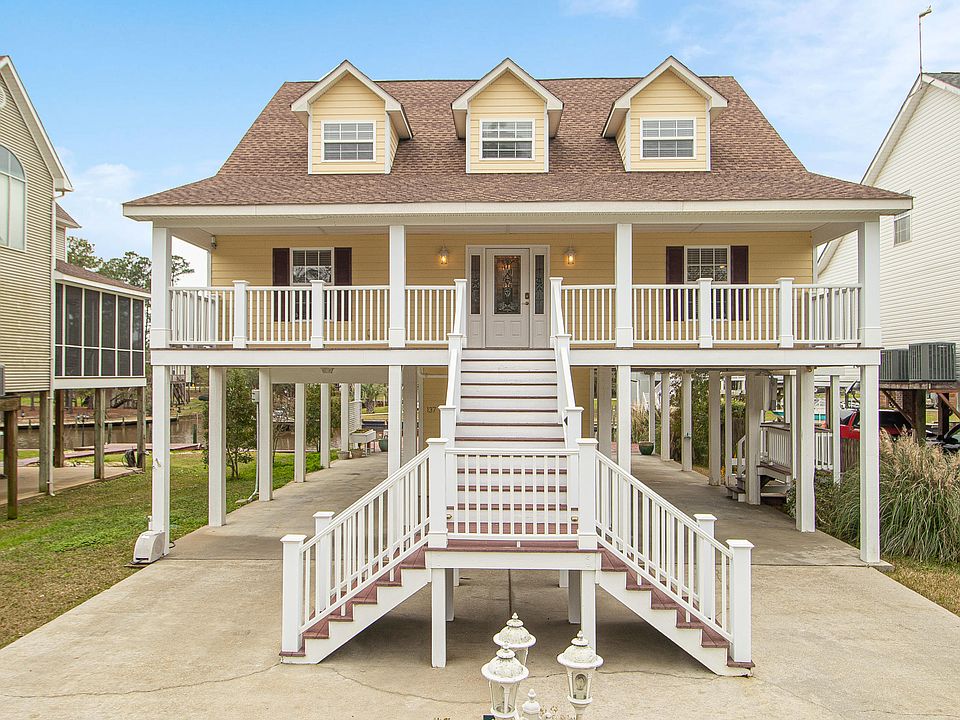 A MUST SEE! Classic Acadian WATERFRONT home in popular Timber Ridge! Just minutes to open waters of the Bay of St. Louis. Built post Katrina with new elevations and low maintenance in mind. Quality throughout and built to last; Hardi plank concrete exterior siding, trek porch deck, 10,000# boat lift, bulkhead, plenty of entertainment area or parking for your family and friends. Residential Elevator, tankless water heaters, marble flooring in baths, granite kitchen counters, stainless appliances including trash compactor and ice maker. 4 bedrooms and 4 baths, video camera security. Be a part of this boat loving community with tennis court, pool, boat launch and playground. Could not build for this price !