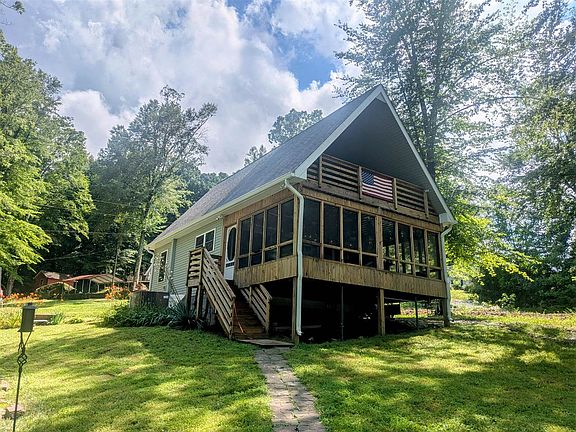 Welcome to 137 Rocky Acres Rd, a beautifully maintained, fully furnished and tastefully decorated 3-bedroom, 2-bath lakefront home nestled on the tranquil shores of Lake Malone. Built in 2014 and situated on 0.33 acres, this quaint lake home getaway offers everything you need for relaxing weekends or full-time lake living. Step inside to a warm, open layout featuring comfortable living areas, a well-equipped kitchen, and an inviting upstairs bedroom lounge area. The home is listed as a 3-bedroom, however the third space is currently configured as a lounge area for the primary bedroom. (limited privacy loft). Enjoy a view of the lake from the screened-in porch, fitted with marine-grade vinyl windows - ideal for gathering in all seasons (note: this space is not insulated). For a more intimate setting, there is a 2nd covered porch upstairs, also equipped with a propane fire table. Outside, you'll find easy, no-stair access to the water, with your private dock resting in approximately 4-5 feet of water. Enjoy swimming and fishing, right in your own backyard. A pontoon boat, trailer, and golf cart are all included, just show up and start enjoying the lake life. The private road location offers added seclusion, with future access improvements already underway. A narrow bridge currently limits access to 5 tons but is currently in the process of replacement with culverts. The cost for this upgrade has already been paid in full by the seller.
