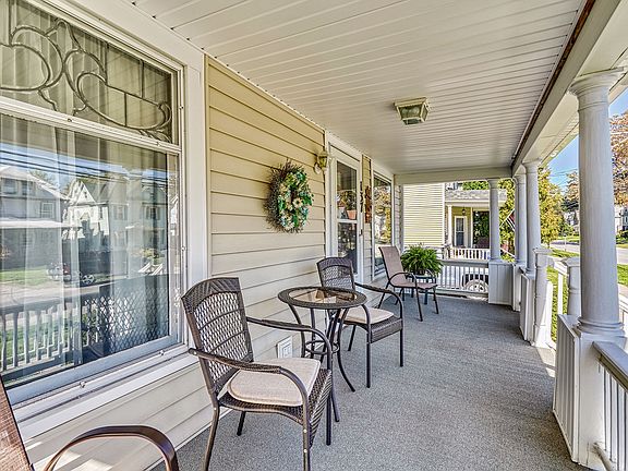 Beautifully maintained 4 bedroom 2 bath colonial!! Character throughout: leaded glass windows, original trim, and pocket doors. Back deck overlooks huge double lot and the 6 CAR GARAGE has plenty of space for your dream workshop or to store your boat/tractor/RV/all of the above. Gorgeous front porch and meticulous landscaping. Large walk-up attic space for rec room or additional storage. Vinyl sided, Roof 2011, AC 2011, Furnace 2009, H20 2018. Open house Saturday 10/12 12:30-2pm!