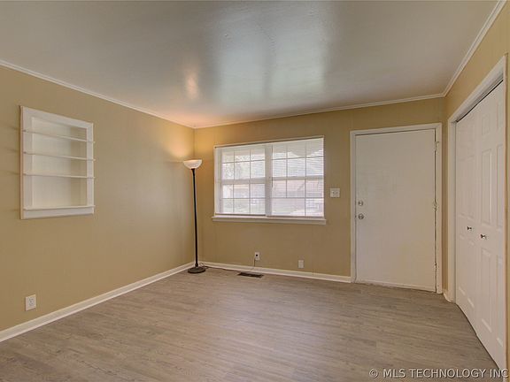 Nice quiet 3 bed 1 bath 1 car garage in Tulsa near Catoosa easy access to the highways. Freshly installed gutters and LVP flooring through the house. Fully fenced yard with mature trees. Great starter home or rental. Zestimate: $131,200. Sold as is.