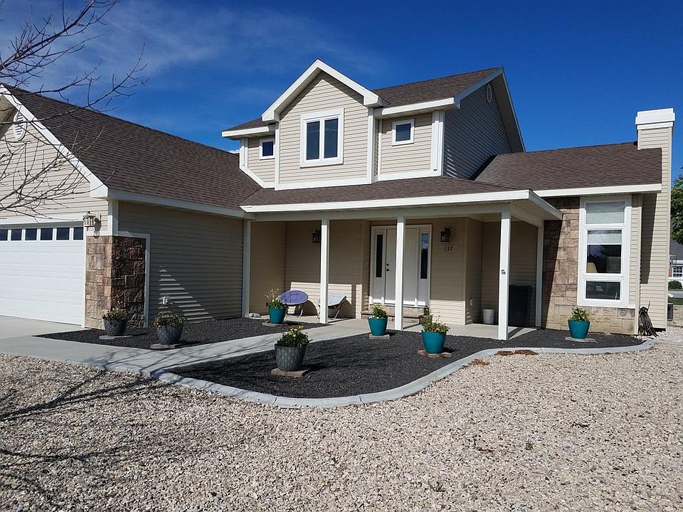 Comfortable living with a western touch, this house features custom knotty alder cabinetry, Douglas Fir plank flooring, and an artisan style chandelier. The owner's suite has a vaulted ceiling, walk-in closet, and full bath with jetted tub and stone step-in shower. Open gathering spaces provide flexibility for multiple use. Graveled side yard is perfect for parking the RV or toy hauler.