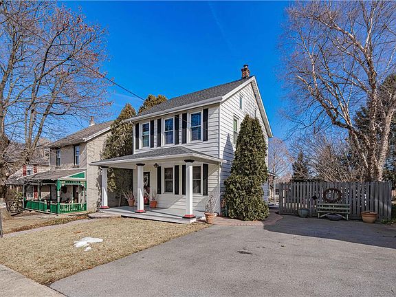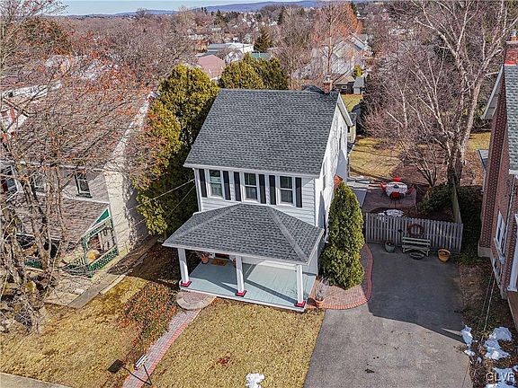 Brimming with curb appeal, this charming single-family home in the heart of Macungie Borough offers timeless character and modern updates. Built in the late 1800s, it seamlessly blends historic charm with contemporary conveniences. The welcoming wide front porch invites you into the spacious living areas, where knotty pine plank flooring adds warmth and character.