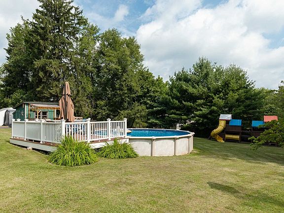 Come home to this perfectly maintained home on over an acre of property & be one with nature.This 3 bedroom 1 bath unique rustic style colonial home has a comfortable feel & has been renovated & updated to perfection.Relax at your home quietly tucked away from our everyday busy lifestyle. Offering a spacious kitchen with stainless appliances,large center island & butcher block counters & custom stone accent wall,2 Bedrooms sit on the 1st floor & the master suite is the entire 2nd floor with a 13x25 walk in closet or office holding endless possibilities of what you could do with it. The home is set in the middle of this great lot with a perfectly level manicured lawn,partially covered front porch,tire swing, 11x20 deck off the kitchen leading into the back yard to your 24' round pool with the attached 12x16 deck.Updates include the exterior & deck painted,new front door,trek front porch,over sized blacktop driveway,propane furnace,2 pellets stoves,custom built ins throughout,200 amp service,220 line for generator,well pump 2012,water softener,chloride system 2012,pool liner 2017, ring door system,newer 1000 gall septic,windows,new roof over kitchen.Everything has been done for you to move into this amazing home.