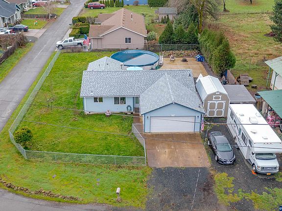 Experience the tranquility of riverside living with this charming corner-lot home, situated just across the street from the serene Little Luckiamute River. This home sits on a 1/4 acre, fully fenced corner lot with RV parking. Inside features laminate flooring, vaulted ceilings, 3 bedrooms and 2 bathrooms. Entertain guests or relax in solitude on the oversized concrete patio, complete with a cozy fire pit perfect for those clear, starry nights. 10X16 fully powered shed and a partially underground pool stay.