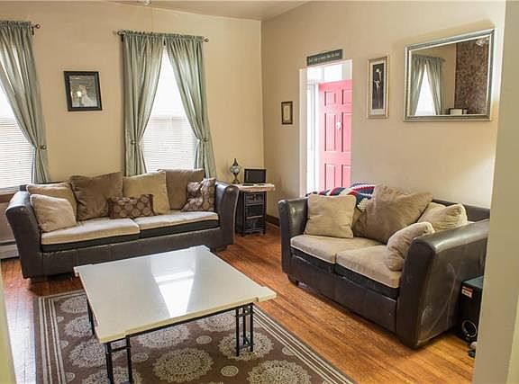 Immaculate & cared for twin home. Terrific 1707 SQFT Twin home features 3 BD 1 bath. Pleasing entryway with original hardwood fl. Spacious living room & dining room leading to an enjoyable kitchen with NEW GRANITE countertops, Granite center island, new tile floor & new appliances. Practical 1st floor laundry & mud room leading to the fenced in yard & 2 car detached garage w workbench. 2nd fl offers a sizable master bedroom with a large built-in closet, 2 roomy bedrooms & Totally remodeled full bathroom with MARBEL SHOWER WALLS. Freshly painted & NEW CARPET. Attic could be used as a 4th BD for additional living space. Home has tons of character with modern touches. Original hardwood fl throughout & ample storage space in basement & attic. Economical gas heat. This affordable home is Tucked away but close to downtown Allentown's restaurants, PP&L events, Parks & highways. What a great price for this twin! Excellent opportunity to own your own HOME for less than paying rent.