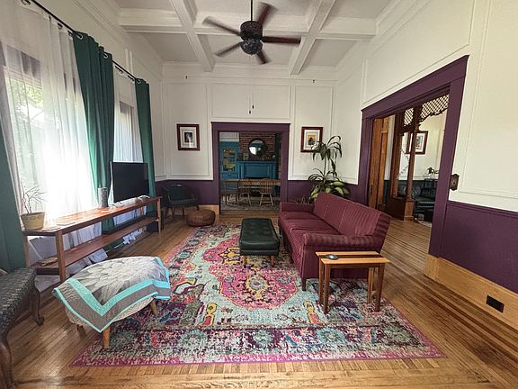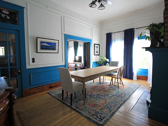 Large Victorian home just a block from downtown. Walking distance to several parks and restaurants. Original hardwood floors throughout the downstairs, and new hickory hardwood floors throughout the upstairs. The whole interior is freshly updated with trim and paint. Sliding pocket doors and stained glass transom windows allow for natural light in every room. The home has large bedrooms, a 12' coffered ceiling, and 7 ceiling fans. The dining room as a walnut mantle above fireplace with a wood-burning insert. The upstairs bathroom has a heated floor, and both bathrooms have claw foot tubs and turn of the century fixtures. The master bedroom opens to a large balcony overlooking the backyard. The balcony has new sunshades to help keep the upstairs cool on hot days. A 7000 CFM whole-house fan quickly cools the entire home in the evenings after the temperature drops. The backyard has a large patio, an outdoor kitchen, and several fruit and nut trees. Oranges, lemons, almonds, cherries, plums and grapes are all mature and fruit each year. There's also a ruby red grapefruit tree and an avocado tree which don't yet produce. There's a 3 1/2 car garage with alley access, as well as a driveway in the front. 1 garage bay is currently set up as a workshop. Owner pays garbage. Renter must have water and PG&E in their name before taking possession of property. No smoking allowed in the house. Pets are case by case.