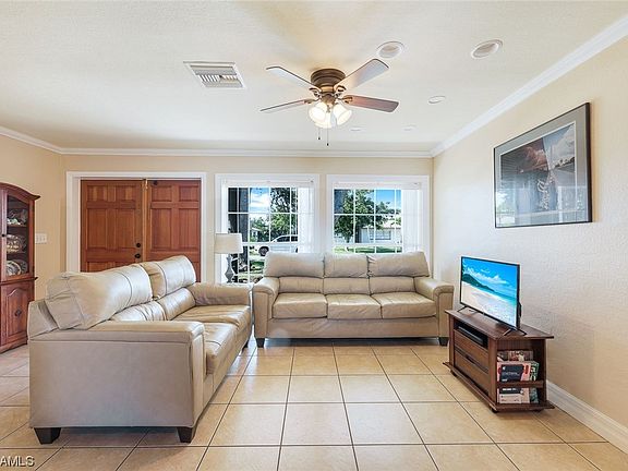 Beautiful 3 bed 2 bath single family home in desirable southeast Cape Coral. Large windows allow for GORGEOUS natural light, and the open concept allows this cute home to feel very spacious. Use your imagination to make the backroom flex space off the kitchen anything you want, an office, a dining room, a sitting room, exercise or yoga space, there are many options. There's a small patio off the back and a nice fenced in yard- AC new 2023, white fence new 2023, patio re-screened 2023, back flat roof new 2023. This home did not flood during hurricane Ian and any wind damages have been repaired. This home has been well cared for and is move in ready. Priced to sell, don't let this gem slip through your fingers! Schedule your showing TODAY.