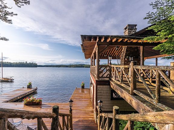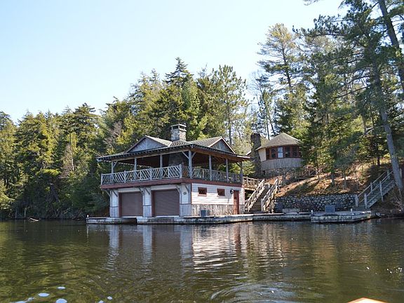 Camp Rush is one of the premier 'Gilded Age' Great Camps on Upper St. Regis Lake. This private family compound is situated on a secluded 7.14 acre peninsula with approximately 1400 feet of beautiful waterfront. This unique property is one of the few Great Camps with year round road access. Beautifully nestled among tall pines and gently sloping land this compound includes multiple out buildings, the main camp, 5 sleeping cabins and two large boathouses. The crown jewel of this historic camp is the magnificent two story boathouse offering the most breathtaking views of Upper St. Regis. 6