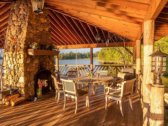 - Exterior Features: Gravel Drive, Deck, Trees, Porch, Underground Utilities, Boat Dock, Outbuildings, Outdoor Lighting, Lake Access Steps, Boat House, Balcony-Covered, Guest House