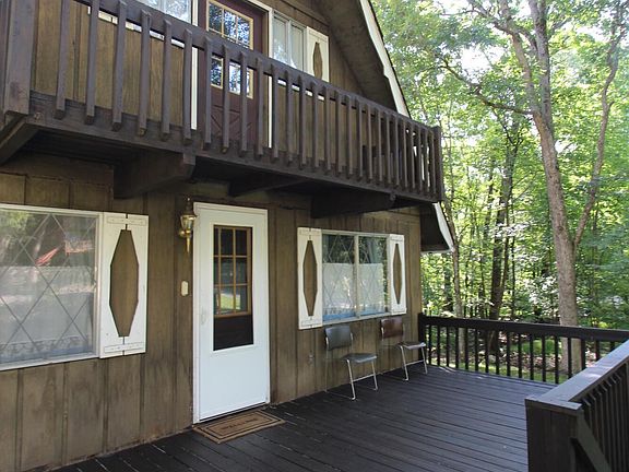 Classic Chalet home in amenity filled community! Features open living area w/ stone fireplace, 3 bedrooms, 1.5 baths & full unfinished basement. Paved driveway, balcony & expansive front & rear decks. Close proximity to lake & playground