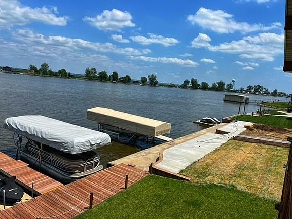 ULTIMATE LIVING AT THE LAKE!. This fantastic home is ready for you to move into. Turnkey with all furnishings staying with the property. Enjoy the sunrises from your upper deck and have your guests enjoy the same view from their rooms in the basement from their private patio. The sunset behind you at night so you can enjoy the whole day on the lake. Dock is ready for use on both lots along with the jet ski lift that stays with the property. Views are spectacular, there is an end road so great privacy, an outdoor shower to wash off before going into the immaculate home. 2 closets for all your tools, toys, and lake items. Shades can come into use when on the lakeside from the ceiling for more privacy if needed