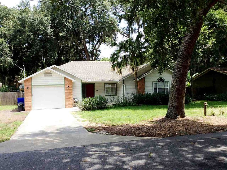 This house is surrounded by beautiful mature oak trees, lots of lush landscaping and fully fenced for privacy while enjoying cooking out or just sitting around on one of the outside patios. This 3/2 has a open floor plan, the 3rd bedroom can be used as a office/den since it's near the front of the house and the kitchen has plenty of space for a breakfast table along with the breakfast/lunch bar overlooking the family room. New carpet throughout along with tile in kitchen and bathrooms.