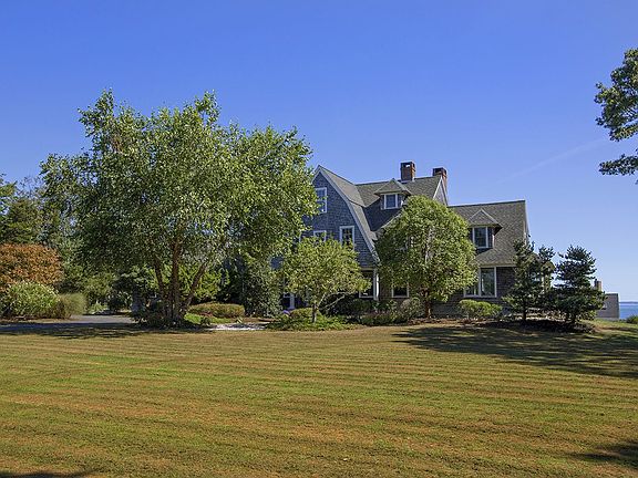 This large level lot houses an expansive Shingle-Style home with wonderful natural light, large windows, high ceilings, well-proportioned rooms, and an open floor plan with partial water views from most rooms. Detailed woodwork and built-ins are found throughout. An eat-in chef's kitchen opens up to a fire placed family room and leads to a covered patio overlooking the expansive yard, ideal for entertaining. The second level offers partial water views, four bedrooms including the master bedroom and a newly renovated master bath. A bonus room on the third floor also offers partial water views and can be used as a home office or kids play room. Located on the highest point in Dartmouth this home is not in the flood plain but has private access to a wonderful sandy beach only minutes away. Come back from the beach and rinse off in your outdoor shower! The property is also known is 19 Meadows Shore Road.