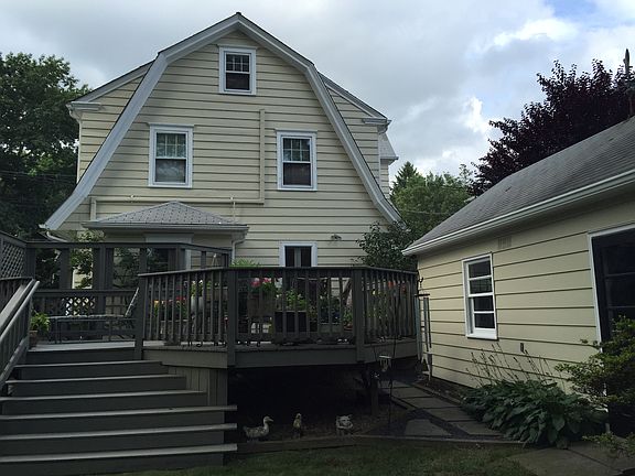 3 bedroom Dutch colonial in a centrally-located small town. 1926 home is well maintained, has high ceilings, hardwood white oak floors, energy-efficient windows throughout, and clean, neutral colors. Paver driveway welcomes you to double-stair side entrance. Great room with wood-burning fireplace, and double French doors to sunroom with built in bookcases. Dining room with chair molding and doors to a deck that was custom-built for entertaining. New contemporary kitchen with picture window. Upstairs, large master bedroom with three closets; two additional bedrooms. Updated contemporary full bath on second floor, half bath on first floor. Large basement includes a finished laundry room, with additional areas for office, workshop (unfinished) and storage. Professional landscaping on front and sides of home; chemical-and pesticide free lawn maintenance. Detached insulated 1.5 car garage with 200 amp socket for power equipment. Attic storage in home and in garage. Low maintenance home with many upgrades including exterior painting in 2015, tankless hot water heater in 2015, internal plumbing and electric updated, new AC (2017), newer appliances (2013). Steam radiator gas heat. Portable generator with dedicated electric panel is included with sale. Walking distance to the library, lake, shops, and restaurants, in vibrant downtown Hightstown. Adjacent to picturesque Peddie School campus with easy travel access to NYC and Philadelphia.