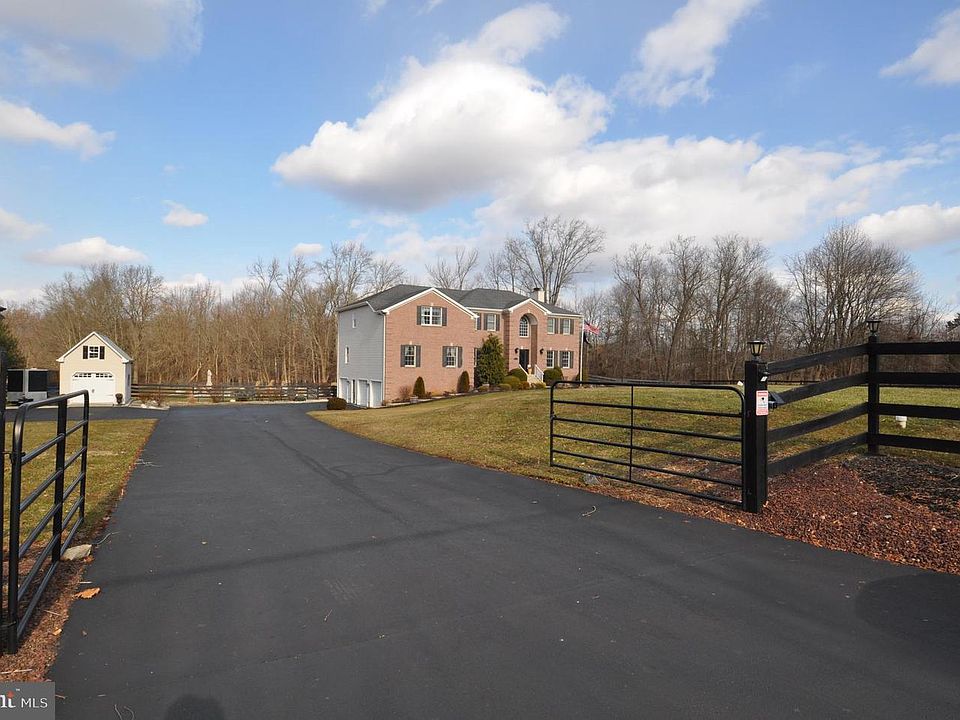 The perfect combination of elegant and chic meets country in this 5 Bedrooms, 4 bath brick front Colonial located in Springfield Township. This 4600+ square foot home will wow you both inside and out. The 3-acre lot is nestled in the countryside with a horse farm across the street and a wooded backdrop in the fenced rear yard. You can host the extended family, friends, or guests with a 1st-floor bedroom and bath as well as a full upstairs bonus room for additional space. The bright foyer begins the tour of this well thought out floor plan with versatile generational living spaces. The dining room offers wood flooring with openings to both the kitchen and the 25 x 25 great room complete with an entertaining center. The chef-inspired kitchen recently updated by Custom Wood featuring Maple cabinetry, granite countertop, and oversized pantry with slide-out drawers. A side island offers overhead frosted glass doors and a beverage refrigerator while the 10-foot sitting island features black cabinetry, granite countertops, 2 built-in garbage cans, and 2 refrigerator drawers. The appliances include a bronze farm sink, top of the line Sub Zero refrigerator, 6 burner cooktop with built-in grill with commercial range hood, and a pot filler faucet. This is a kitchen for creating, cooking, dining, and entertaining. The family room is just off the kitchen featuring a wall of windows, fireplace, and access to the first-floor office. The great room is tucked away behind french doors offering a perfect place for game time or quiet time. A first-floor bedroom with access to a full bath can be great for guests or extended family members. The first-floor laundry room offers a door to the outside for convenience. 4 bedrooms are located on the 2nd floor including the master suite with 2 closets, a full bathroom with a separate soaking tub, and a walk-in shower. Three additional generous sized bedrooms and 2 full baths complete the sleeping quarters. There is a second office with a unique craft closet located in the center of the home for easy access to everything. A hidden treasure can be found in this 25 x 25 2nd floor bonus room offering a bistro-style countertop with a sink. This gem can be reached from either the 2nd floor or a separate back staircase offering multiple uses and could be perfect for at-home learning, college students, or a Nanny suite. Some highlights throughout the home include beautiful hardwood floors, crown molding, ceramic tile baths, creative workspaces, craft closet, 2 separate offices, expansive living area, and partially finished walkout basement. The three-car oversized garage has plenty of room for tools and off-road vehicles. The paved driveway has a half basketball court and garage shed for outdoor tools. The property has established landscaping, rear deck, flagpole, firepit, and wood slat fencing with lots of outdoor space to enjoy. The 30,000 gallons heated self-cleaning pool with paver decking offers memory-making opportunities. The location is convenient to the district's schools, shopping centers, numerous tasty eateries, and recreational areas. Enjoy an easy commute to Routes 206, 295, the NJ/PA Turnpikes, and all Philly bridges,