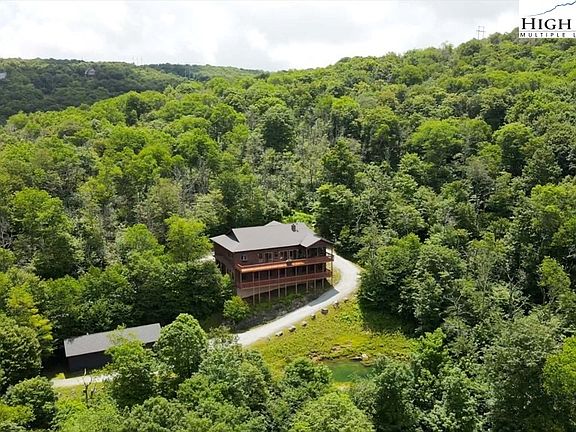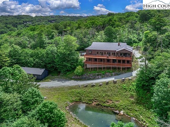 Welcome to the Spruce Hollow Estates on 18.08 acres on Beech Mountain. Stellar long-range views, pond and a beautiful five-bedroom, 5.5-bath home, with oversized two-car garage, workshop and awesome family room. The 18 acres are comprised of three lots for privacy and protection, yet you are minutes to Beech Mountain Resort and the Club. Pull into the porte-cochere, step inside to soaring vaulted ceilings and a thoughtful floor plan. Off the foyer is an office and half bath. Continue into the great room filled with light, beautiful stone fireplace and wet bar area. Dining room and chef’s kitchen were designed with family and entertainment in mind. Step on to the deck and enjoy the views! Off dining room are two guest suites both with gas fireplaces, a laundry room and butler’s pantry. Primary suite is well appointed with a lovely gas fireplace, dual walk-in closets, walk-in tile shower, soaking tub and custom double vanities. Off the primary suite is access to the covered porch to take in the views of the pond and long-range views. Lower-level features two guest suites, both with gas fireplaces and a fantastic game room. Fine craftsmanship throughout. Huge decks on both levels. Furnished. Tax card discrepancy, garage and finished basement reversed.