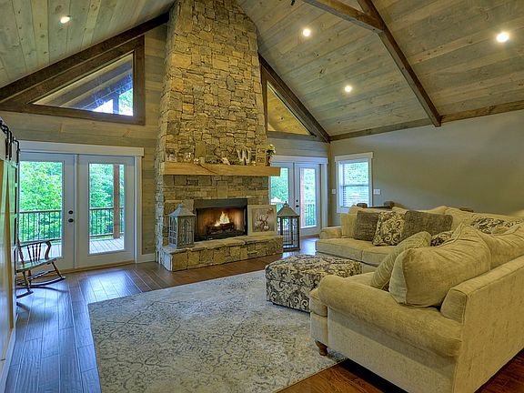 Charming Craftsman home is nestled on gentle, wooded tract in quaint and quiet gated community off paved road & just mins from historic downtown BR, Lake BR, and Toccoa River...three spacious bedrooms & two baths on main, master features ensuite w/ spacious tile steam shower, double vanity & walk-in closet, lots of storage throughout, chef's kitchen boasts granite counters, stainless appliances & custom cabinetry with large bar area alongside roomy dining area, laundry/mud room leads to oversize carport, drywall/wood mix make for a light, airy interior with a rustic flair & cozy stone fireplace, upscale finishes and fixtures throughout, low maintenance hardi board exterior w/ craftsman colors & architectural detail, plentiful porches and decks, full finished terrace level provides for extra living, addt'l garage and entertainment area - den, rec room, office, bedrooms - ....perfect family home or that much needed getaway in the mountains, walk to community pavilion with lake, stream & outdoor FP, easy access and gentle yard area make this the perfect property!