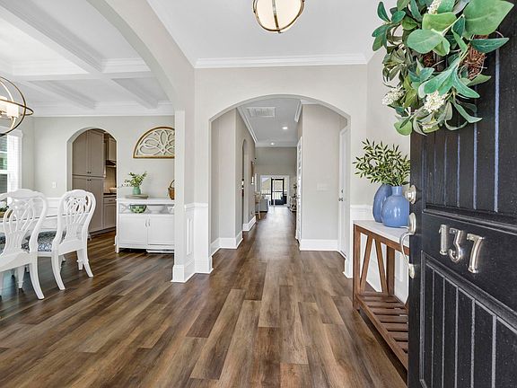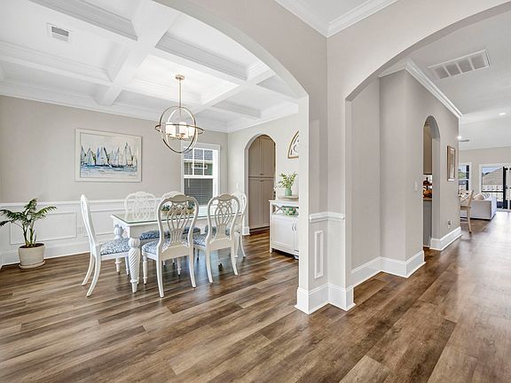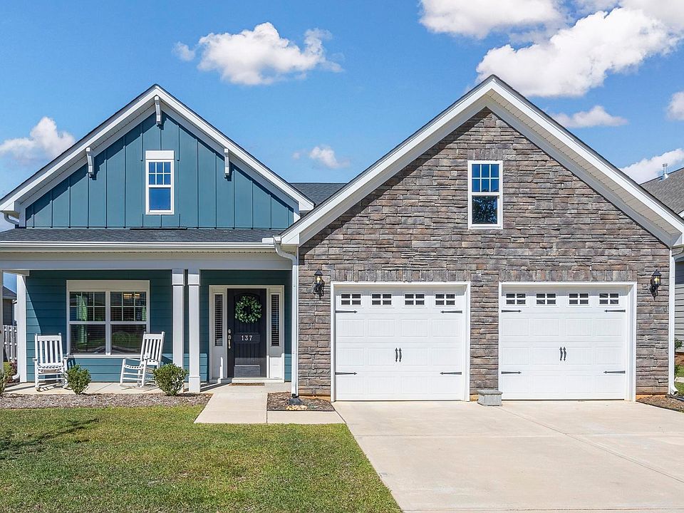 Simply stunning, this home is a rare find nestled in the desirable neighborhood of Sterling Bridge. This single-story, craftsman-style residence boasts three bedrooms, two bathrooms, and a bright, inviting open-concept layout. Vaulted ceilings add to the luxurious feel, enhancing the sense of space and elegance throughout. Plant yourself in the kitchen to begin creating culinary MAGIC ~beautiful finishes including a peninsula, granite countertops, gas cooktop, and built-in oven and microwave. The warm, welcoming atmosphere truly makes this house feel like home. The formal dining room, with its coffered ceilings and arched pass-through, is ideal for entertaining. The spacious family room, complete with a fireplace, opens seamlessly to a screened-in porch and an oversized patio, perfect for indoor-outdoor living. The primary bedroom, with direct outdoor access, connects to an en-suite bath featuring a large ceramic tile shower, double vanity, and a walk-in closet. The split floor plan offers privacy, making it an ideal design for families. Sterling Bridge offers an array of amenities, including a pool and common areas. The HOA ensures the property always looks its best, providing front yard fertilization quarterly, regular mowing every Thursday, and a soft wash of the exterior twice a year. Irrigation systems are in both the front and back. Located within the award-winning Lexington School District One, with convenient neighborhood access to the elementary school. A breath of fresh air and a true gem, this home is not to be missed! Disclaimer: CMLS has not reviewed and, therefore, does not endorse vendors who may appear in listings.