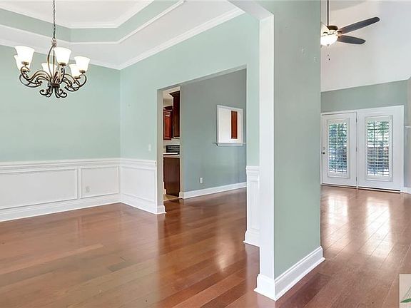 Listed below appraised value! Come tour this full brick beauty in desirable Dasher's Landing community! This stunning home features a split floor plan with a well appointed master suite and large walk in closet, and 2 additional guest rooms all on the first floor! Upgrades include high ceilings, hardwood floors throughout the main living areas, lovely corian countertops, private side entry garage, and stainless steel appliances in the cook's kitchen! Upstairs you will find an oversized 4th bedroom which could also be used as a second living area or office space. The home sits on a beautifully landscaped .35 acre corner lot with mature trees and large brick paver patio. Neighborhood amenities include a pool and splash pad.