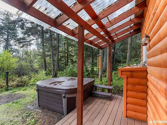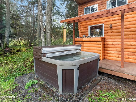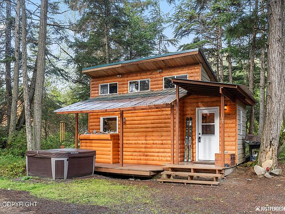 Enjoy your very own piece of Girdwood mountain magic. with this adorable tiny home on a private lot! This contemporary and modern ski cabin includes 1960's log cabin details mixed in with space saving features! Full Kitchen with solid cooking surface. Spacious shower in 3/4 Bathroom. Loft sleeping quarters. Gas fireplace. Spacious covered Trex Deck. Ample parking and storage. Great natural light!- Efficient Living: Enjoy the convenience of a full range of utilities and the added benefit of stacked front-loading laundry and cozy gas fireplace. - Modern Culinary Delights: The well-appointed kitchen boasts a sleek solid cooking surface, perfect for culinary enthusiasts. - Cozy Loft: Rest in the loft sleeping quarters, a cozy retreat that maximizes space and comfort. - Outdoor Entertaining: Step onto the covered Trex Deck, the ideal spot for outdoor gatherings against the backdrop of natural beauty. Hot tub included! - Parking and Storage Made Easy: Benefit from lots of gear storge in a huge shed and ample parking space on the crushed rock driveway, ensuring hassle-free arrivals.