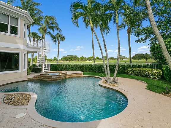 Beautiful 7 bedroom 6 1/2 bathroom estate home on the 18th fairway of the golf course with extraordinary views of the stunning new clubhouse and lake. The light and bright Main House has 4 bedrooms, 4 1/2 bathrooms with volume ceilings in the living room and dining room. The kitchen is ideal for entertaining featuring a large island, gas range and wine refrigerator. Work from your home office with unobstructed views of the golf course. The attached Guest House with private entrance has 3 bedrooms, 2 bathrooms and its own kitchen and living area. This custom floorplan is ideal for live in staff, in law suite, nanny suite or guests. Located in one of the area's most prestigious Jack Nicklaus Signature designed golf course communities. $15M club renovation in top 100 Platinum Clubs of the world