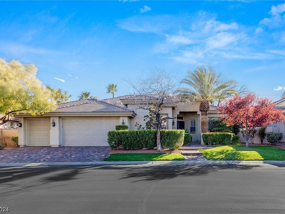 Inside the heart of Summerlin's highly desired guard gated community "Aventura", a tastefully upgraded one story home on a premier interior lot. Refreshed kitchen features new countertops, engineered hardwood floors, wine fridge, and more. An entertainer's dream backyard oasis immersed in complete privacy including an oversized pool/spa, tranquil waterfall, covered patio, and plenty of space to lounge. A meticulously kept interior features an intimate level of comfort through out the home with exquisite finishes of custom plaster, stone floors, high end cabinetry, and much more. This impressive layout offers high ceilings through out, areas to entertain, and oversized rooms. The grand primary suite offers direct access to the backyard, a cozy fireplace, and resort style bathroom featuring a soaking tub w/jets, large shower, vanity, and walk in closet w/custom built ins. Surround sound through out and premium water softener recently installed.