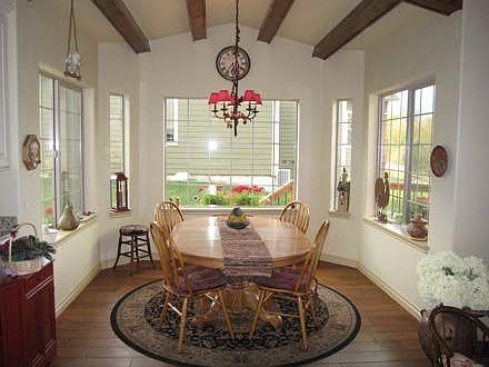 High end, Quality townhouse! Meticulously maintained with many upgrades, wood floors, granite, custom tile, vaulted ceiling, wood beams, master bedroom & bath with walk-in closest, gas fireplace & beautiful landscaping. Gas forced air heat and A/C. Borders HOA Park with Creek & fantastic mountain views off the large deck. Mint condition! Located in newer subdivision with great aesthetics.