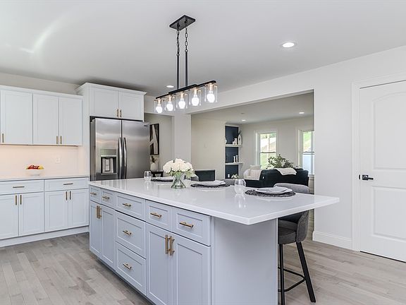This stunning new construction offers four spacious bedrooms and two and a half bathrooms, creating the perfect balance of comfort and style. Step inside to discover a thoughtfully designed interior featuring gorgeous granite countertops & sleek stainless steel appliances.The kitchen boasts a large center island while the abundant cabinet space and large pantry ensure storage will never be an issue. The master bedroom suite is a true retreat, complete with a generous walk-in closet and an elegant bathroom featuring a double vanity and exquisite tiling. Throughout all bathrooms, you'll find the same attention to detail with beautiful tile work and modern gold and black fixtures that add a touch of sophistication. Convenience abounds with first-floor laundry and a versatile office or bonus room for those working from home. The living room creates a cozy atmosphere with its custom shelving and electric fireplace. The large finished basement with patio access extends your living space.