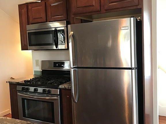 **Available June 1st** East Arlington, walk to Alewife Red Line T! This rental checks ALL your boxes. 3 Bed/2 Bath Condo w/ master suite, 2 off-street parking spots and basement storage included. Private porch and shared yard for those looking for outdoor space. Renovated kitchen w/ granite countertops and stainless steel appliances. Forced air heat and central A/C, in unit laundry. Great location for bike riders, right on the Minuteman Bike Path. Bike storage on site. Lease 12+ months. Tenants must have renters insurance. Utils are not included in the rent. First, security and 1 month broker fee due up front. Pets OK- small dogs 20 lbs and under, or cats, max of 2 pets total. Larger dogs may be considered. Great location for pet owners close to the Thorndike Dog Park! Please note, no Zillow applications. You may apply through the listing agent only. One bedroom only fits a twin bed and contains the doorway to the back stairs. Tenants pay gas , electric, water sewer and cable/internet