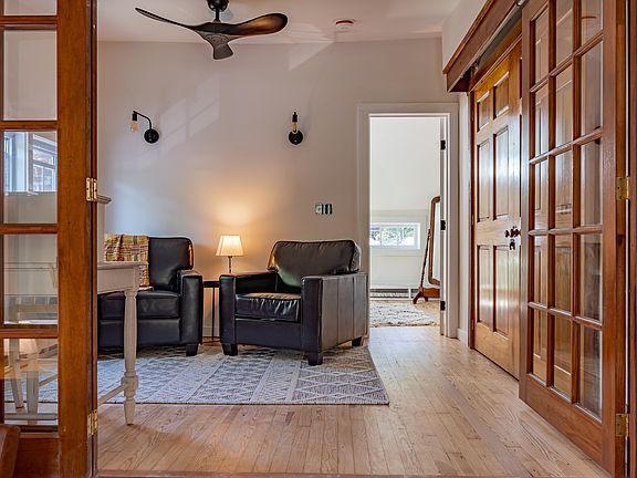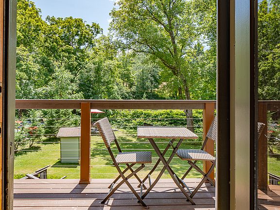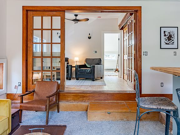 Large 720 sq. ft apt for rent in a charming early 1800's colonial in the heart of Woodstock Village, directly across the street from the iconic Tinker Street Cinema. This spacious, floor-through apartment is located on the West side of the second floor of The Main House. It is accessible through the main entrance of the house on Tinker Street, and up a charming flight of pine wood steps, original to the house. It is a modern, bright one-bedroom with windows on three sides. It features a renovated, well-stocked kitchen with a breakfast bar, a bathroom with a glass-enclosed shower, and a large living area. In between the "social" and "sleeping" zones of the apartment is a room - one step up - with French doors that can close or remain open; with two deep, cushy club chairs and a desk, it's a great spot to read, lounge, or use as a writing space. The airy bedroom faces North, and has a Queen-sized bed for restful sleeping. The back side of the apartment, which faces South, lights up the wall of windows in the kitchen. French doors from the kitchen open to a private deck and spectacular views of the Comeau Property fields in the distance, and a birds-eye view of the brook and the grounds we call "The Back Forty." Washer and dryer in the unit OCATION: The house is less than 1/4 mile to the main intersection of Tinker Street and Rock City Road in the heart of Woodstock Village, and the drop-off stop for buses from NYC and Albany operated by Pine Hill Trailways. Just further afield is the trailhead for Overlook Mountain, a popular hiking trail that takes you to the ruins of the old Overlook Hotel, and many other varied and spectacular Catskills Mountains hikes. Winter downhill skiing and snowboarding is only 30 minutes away at Bellaeyre Mountain in Pine Hill, and at Hunter Mountain. PROPERTY: Features 1 acre of beautiful grounds, a stream, a fire pit, and both communal and private relaxation areas. Some musicians and artists also have studio space on our property. It is the perfect place to wander and relax, without intrusion, but your neighbors or other guests might cross your path. At the back of the yard is direct access to the walking trails of the Comeau Property: 76 acres of open fields, woods, and creeks to explore. UNITS: Apt features high-speed Wifi, comfortable bedding (queen), towels, a Bluetooth music player, everything needed to cook great meals. Please note: we do not provide TVs or streaming services. Thank you. Look forward to your inquiry and talking with you Landlord pays water, sewer, garbage, recycling, lawn maintenance, snow plowing (not shoveling)