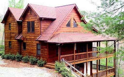 FURNISHED 2 BR/ 2BA cabin on 3 acres, located in rustic mountain community. If you are looking for a cabin w/all paved roads, yet private... this is it! Great room features cathedral ceiling, wood burning stone fireplace and wood floors. The fully equipped kitchen has an island with additional room for dining.*Nice sized loft* Large Master Suite with private porch to enjoy the seasonal mountain view and a wrap around covered porch with an outside fireplace. Full unfinished basement allows room for future bedrooms and family room.Very nice community with clubhouse and swimming pool exclusive for property owners. Located 5 miles from Downtown Historic Ellijay. Short Sale - All offers subject to lender approval.