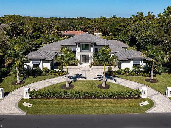 2024 Sand Dollar Winning Custom Home built by Platinum Custom Homes and furnished by Clive Daniel Homes, nestled on an idyllic 1 acre lot only minutes from the beach, this 4BR/5.5BA, 5,824 sqft executive residence emanates coastal elegance and immaculate tropical landscaping. Thoughtfully designed with both beauty and function, the sundrenched interior mesmerizes with soaring vaulted ceilings, an oversized great room with fireplace, and a gourmet kitchen featuring premium stainless-steel appliances, quartz countertops, gas range and a butlers pantry. Evoking luxe indoor/outdoor vibes, the entertainment-ready backyard includes a covered lanai, an outdoor kitchen, a fireplace, a swimming pool, and a spa. Blissful evenings are discovered in the primary suite which has huge dual closets and an opulent en suite with dual vanities, a soaking tub, a walkthrough shower. Three additional bedrooms have walkin closets and en suites. Other features include: 4-car garage, bonus room, exercise room, Collier County water, lighting control in main areas, Sonos speakers, generator, roll down screens & shutters, water softener, airconditioned garages, entry columns and gates are underway and so much more.