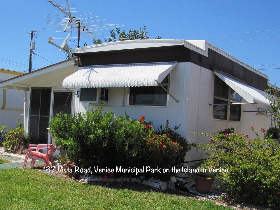 Think outside of that Mobile Home Box. 137 Vista. It's a Single, it's near Venice Beach, it's a perfect Beach Mobile. Just think about it. The Lanai has a life of its own. 47' in length adds to the total square feet. The rear of the home does not have a direct rear neighbor. With a private rear entrance that space can be a Guest suite. Or, since it is a covered patio, simply enjoy it as your own Private Oasis. Sit down, feel the cool Gulf breeze and sip your favorite drink. This Beach Mobile has low utilities. And, VMP is the lowest land rent, just $325.00. New AC provides cool air throughout the home. 137 Vista has a few new windows and storage too. Location, Location. Live on the Island near Venice Beach. Think outside of that Mobile home box. Get Creative. This is a Beach Mobile Home. Call Susan. Manufactured and Mobile Homes for Rent and for Sale in Venice.