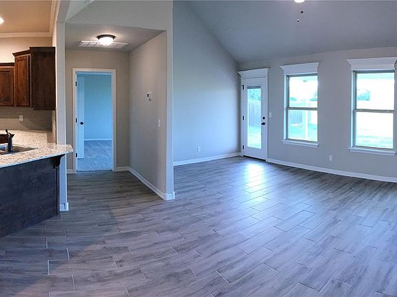 Wide open floor plan with 10' Plus living room vaulted ceilings. Large walk around master closet with Jacuzzi tub in the middle. Large bedrooms along with large pantry and utility room. Porcelain wood tiles through out and carpet in the bedrooms. Granite in kitchen and bathrooms. brand new home in pristine condition. Excellent family neighborhood that is close to schools and shopping. Large front and back porches are covered. Brand new Stainless steel appliances. Oil rubbed bronze fixtures throughout.