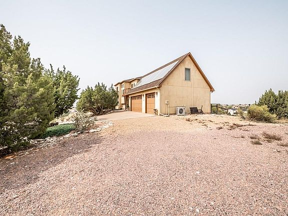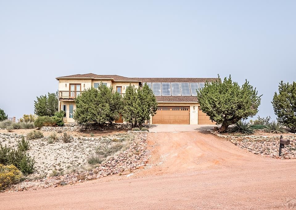 This stunning two story Tuscany style feel of a home is perched on a knoll that takes in Pueblo West, Pikes Peak views and Pueblo Reservoir- minutes away for your boating and fishing convenience; or trail walking,riding or exploring! Attractively done active-solar collection system with in floor heating and designer concrete floors. Beautifully xeriscape landscaping on an acre and a half of natural terrain. Covered rear porch, extra patio with hot tub and room to entertain. Complete built-in home audio system Home has optional 4th bedroom upstairs with bonus living area! Stainless steel appliances in the kitchen, with a built-in spice rack.