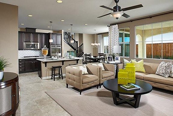 The main floor of the Benton Plan includes a 5th bedroom downstairs, which can be easily converted to a private study, a spacious great room and an open kitchen with a central island, built-in pantry and adjacent dining room. There's also a large covered patio for outdoor entertaining. Upstairs, you'll discover a comfortable loft and a luxurious master suite with a private bath and a generous walk-in closet. Options include a gourmet kitchen and fifth bedroom in lieu of the loft. Highlights: 1st floor bedroom + full bath; Loft + 4 bedrooms upstairs; See photos here: https goo.gl/photos/jo6uLADa28nCMcep7 A video virtual tour is here: https goo.gl/photos/RM8q8iBYVXSRTgYMA Check out this home's included features: - GE stainless-steel appliance package; - Maple kitchen cabinetry with 36'' upper cabinets; - Granite countertops in the kitchen - Cultured marble bathroom countertops - Luxury master bath with soaking tub/separate shower - Shaw carpet with 5-year warranty Very little maintenance in front and back yard. A covered patio in the backyard is included.