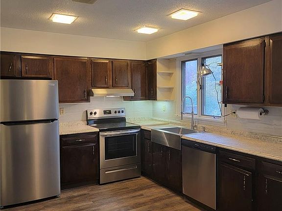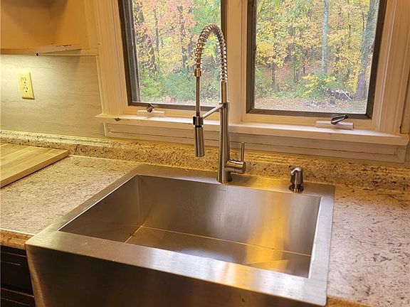 Totally renovated. Fresh paint, kitchen appliances, sink, counters, New bathroom vanities and toilets, new vinyl plank luxury flooring on main level and new carpet on 2 level. ABSOLUTELY NO PETS (DO NOT ASK). Wood-burning fireplace. Living/Dining combo, kitchen and powder room on main floor, french doors to large deck. One very large bedroom and one good-sized bedroom with full bath on 2nd floor. Lots of closets. Lower level has access to 1-car garage with remote and finished room with laundry. Currently electric/radiant heat. NEW split AC/HEAT system will be in place by end of January.