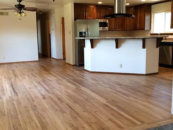 Where to begin, writing about this beautifully remodeled ranch house. Enjoy the open concept kitchen, with new custom kitchen cabinets, new granite, and new stainless steel appliances, The oak floors have been refinished, the pictures do not do them justice. New tile, new carpet, new ceiling fans, new dual pane windows, new roof, central heat and air, new paint inside and out. The house sits on a large lot, with many fruit bearing trees,(apple, pear, nectarine, pecan), just to name a few. Nice neutral colors and natural light. All the work has been done!