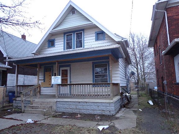 Exterior Features:A cape cod style house. The house did have metal siding. Most of it has been removed and the old wood siding is exposed. The asphalt shingle roof is in okay condition. There is a wood privacy fence around the backyard. There is off street parking at the back of the property. There is a nice covered front porch.Interior Features:The overall interior is in fairly good condition, The kitchen, has been completely remodeled with lots of cabinet as well as extra counter space. The vinyl flooring in the kitchen is in good condition. The bathroom has also been remodeled and updated and is located upstairs. All hard wood floors. The walls and ceilings could use a fresh coat of paint. There is a full basement. Mechanics are include a forced air furnace and a hot water heater. The house features 4 possible 5 bedrooms.