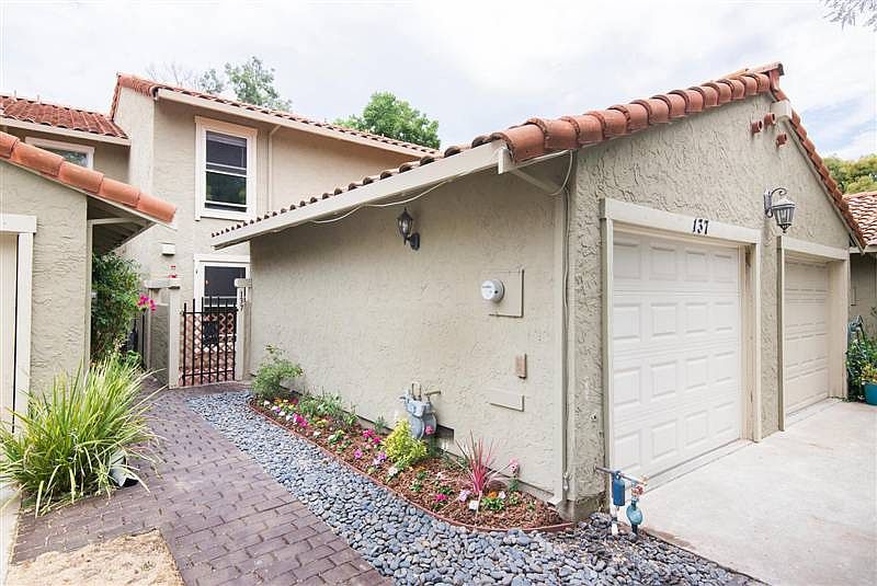 Fantastic location, walking distance to the heart of downtown Campbell, this 1,151 square foot 2-story town-home style property is conveniently located in a pleasant complex with low HOA fees. Freshly painted with new base moulding throughout, this home offers a pleasing floor plan, two bedrooms and 1 ½ baths. The living room has a sliding door to a private patio that leads to a quiet, grassy, well cared for common area with gated pool. Perfect for BBQing as well as a gas fireplace for those chilly winter nights. Attached one car garage and inside laundry. Recently purchased dual pane windows with one-time transferable warranty; Central AC/Heat newly installed; new paint, carpet and baseboard, clean! Plumbing updated to copper piping. Kitchen fully updated with cherry cabinets, granite countertops and stainless steel appliances (dishwasher, range). Full bath was remodelled completely with gorgeous tile work. Half bath has new flooring, fresh paint. Recessed lighting installed downst