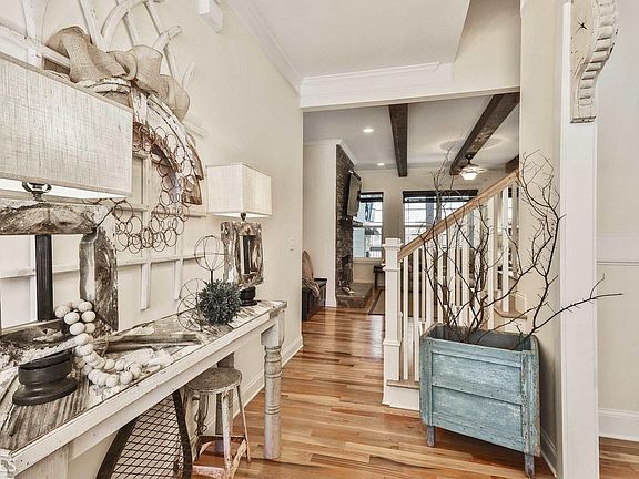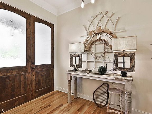 - Interior: Foyer - Entrance, Cable TV Connections, Ceilings - Vaulted, Ceilings 9 Ft Plus, Double Vanity, Gas Logs, Pulldown Attic Stairs, Separate Shower, Walk-in Closet, Whirlpool Bath, Bookcases, Tile Bath, Ceilings - Trey, Hardwood Floors, Carpet, Tile Floors, Exposed Beams