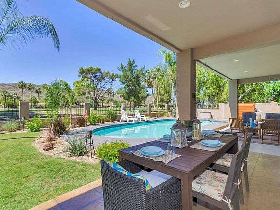 AVAILABLE February 1, 2023 Security deposit is a full month rent, dogs considered. The best family street in Moon Valley, surrounded by well kept high end homes! LUXURY 4 bed 3 bath Moon Valley country club estate. 3300 sq feet. 16 foot ceilings, chefs kitchen, huge covered patio. Multiple AC units. Everything is top of the line, shaker cabinets, solid wood doors, berber carpet, walk in showers, granite and marble in bathrooms. In ceiling speaker system. Heated large play pool, outdoor shower. 2 car garage with large workbench and another half garage area with tons of shelved storage! Beautiful garden and lots of grass. Golf course and mountain views. This home has way too much to list and more! Rent includes weekly pool service and bi-weekly gardener paid by landlord. Owner pays for weekly pool service and bi-weekly landscaper. Tenant pay for utilities. No smoking. Small dogs okay.